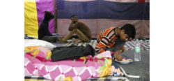 Tiny spaces mark zones of privacy for riot victims in relief camps Neat little squares tell..
