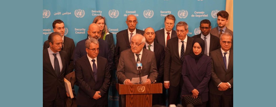 The joint statement was issued at a “stakeout” on Tuesday (February 17, 2026), and it was read out by the Palestinian Ambassador to the UN, flanked by diplomats from dozens of countries that co-signed the document.